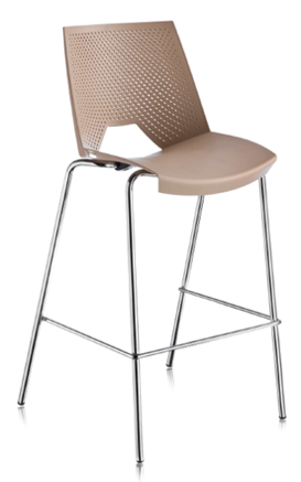 A barstool that can fit any corporate food court or hospitality setting! Store them stacked, if not in need or add upholstery on the seat of the polypropylene shell, play with different colours and textures to creat your ideal setting. You can easily rest your leg on the frame, so you can enjoy your lunch or coffee in the highest comfort.