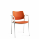The Tip Top visitor chair is designed to be used in conference or meeting settings. It is made of shock resistent polypropylene and has a frame with four legs which comes in three color options: chrome, black, white and can be upholstered if desired. It also has the option to come with a tabletop and armrest for added comfort and convenience. The chair can be connected to other chairs using a linking device and is stackable for easy storage. This chair is part of a wide product line, together with its sled-, mesh-, ergonomic- and bench versions.